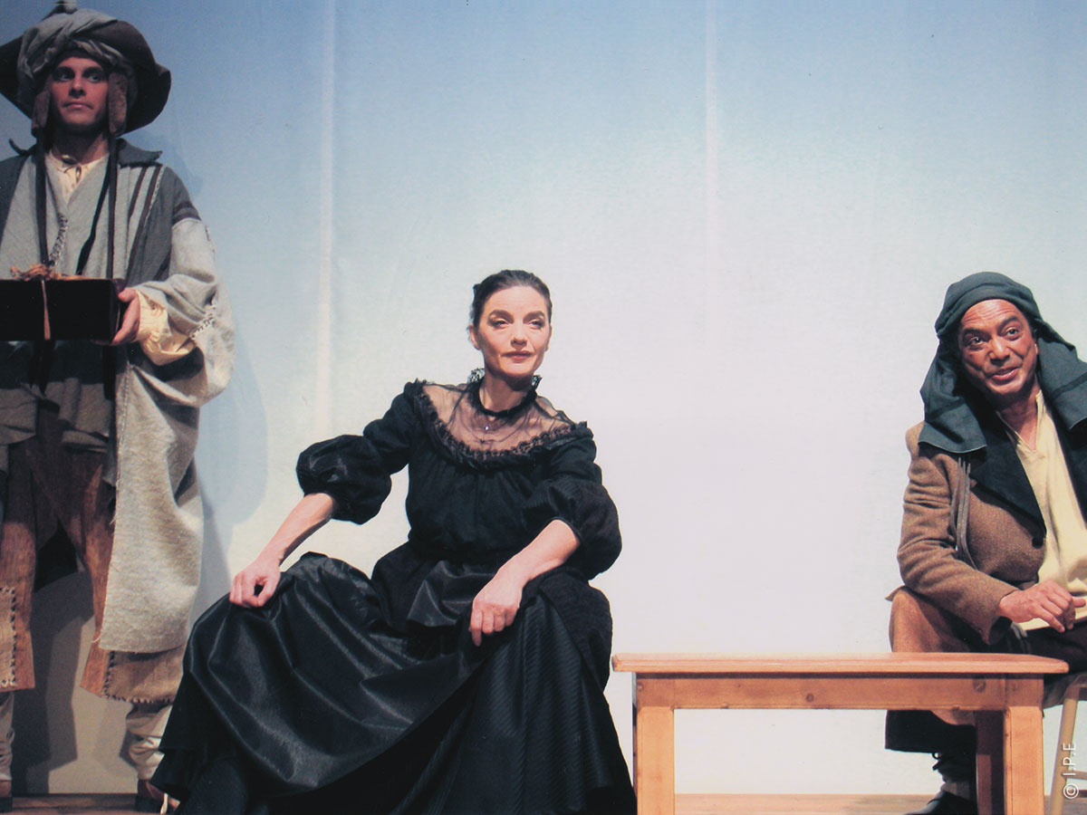 Martine Midoux (La femme de Léonard, debout), Antonia Bosco (La mère), Aloual (Le père), Patrice Gallet (Léonard)